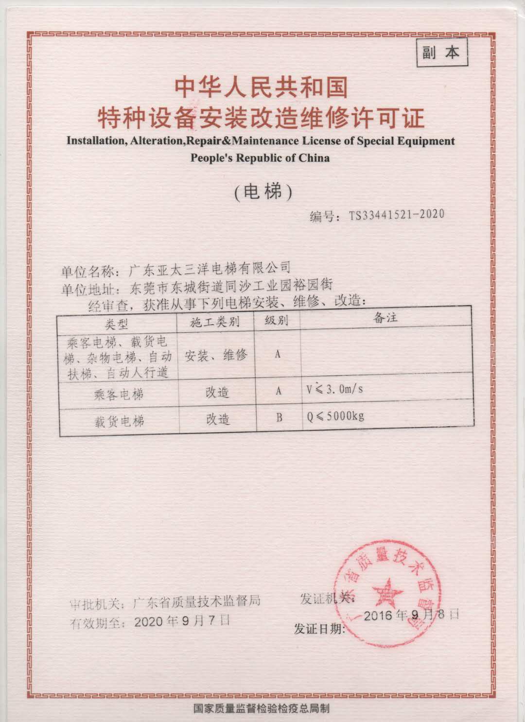 您好!歡迎來到廣東亞太三洋電梯有限公司官網!專業生產各種電梯設備的廠家。提供電梯外貿出口業務歡迎咨詢13528755601